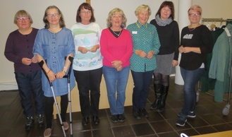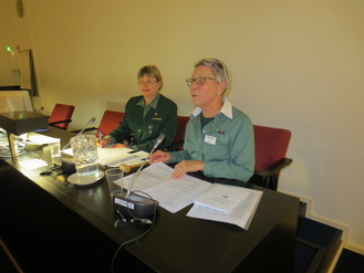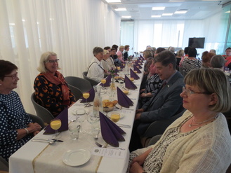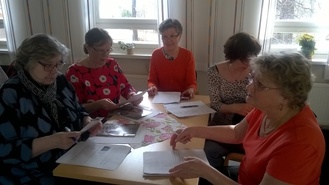 ![]() Sihteeri Sanna Huuhka ja puheenjohtaja Tiina Utti | ![]() Kevätkokouksessa palkittuja: Seija Juutilainen, Seija Mark, Satu Tähkä, Tuula Nyman, Soli Siiropää ja Maila Susi |