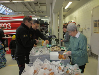 112-päivää vietettiin kautta Suomen tänään 11.2. Jälleen kerran yhdistyksemme sisaret munkkeineen menossa mukana Kouvolan paloasemalla.