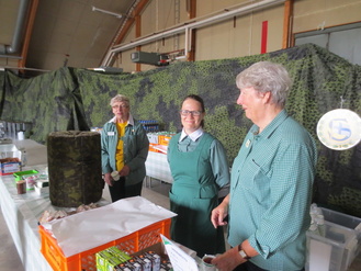 Viranomaiset Manskilla -tapahtumissa olimme mukana Puolustusvoimien kyljessä 17.8. Sodeveli Kalle ja varusmies pistivät teltan pystyyn ja sen jälkeen kahvi- ja munkkikauppa kävikin kuumana