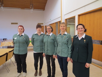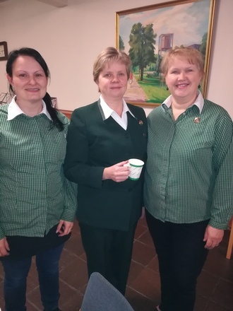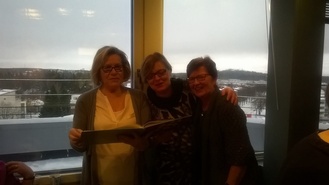 ![]() Sotilaskotiansioristin saivat Helena Rämö ja Rauha Halmela | ![]() 10-vuotismerkin saajsita paikalla olivat Ritva Anttila, Aila Peltonen ja Maarit Kotiranta |