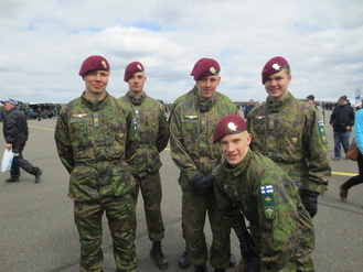 ![]() Puolustusvoimien komentajan myöntämä sotilasansiomitali luovutettiin sihteeri Sanna Huuhkalle sotilaskodissa 1.6.2017 |