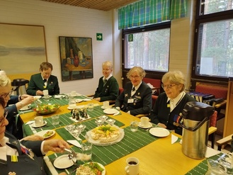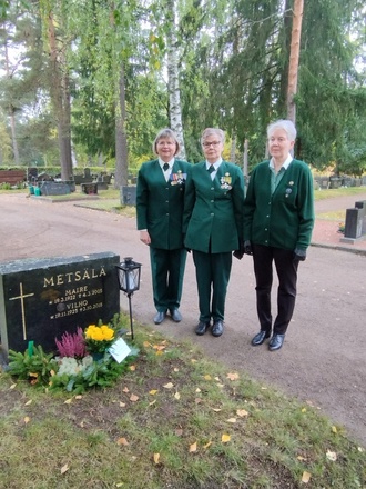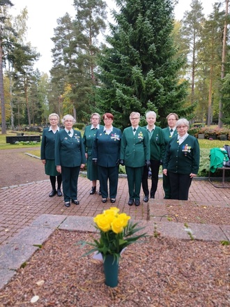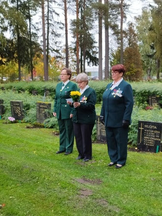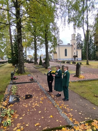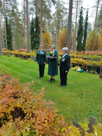 Kouvolan Sotilaskotiyhdistys olisi täyttänyt 1.10.2022 100 vuotta. Yhdistyksen toiminnassa vaikuttaneita sisaria kunniakäynnillä Kouvolaan haudattujen entisten puheenjohtajien haudoilla ja sen jälkeen juhlakahveilla sotilaskodissa.