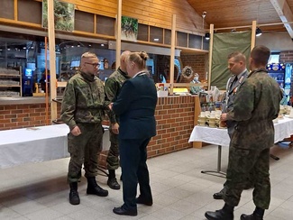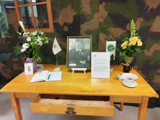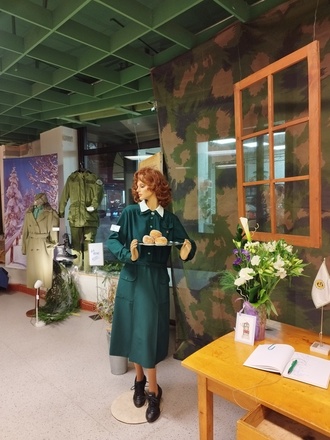 Yhdistyksen perinnejaosto piti sotilaskotikanttiinia Kouvolan keskustassa viikon ajan joulukuussa. Irmeli Kuisminin taidokas kädenjälki näkyi sisustuksessa.
