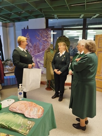 Yhdistyksen perinnejaosto piti sotilaskotikanttiinia Kouvolan keskustassa viikon ajan joulukuussa. Irmeli Kuisminin taidokas kädenjälki näkyi sisustuksessa.