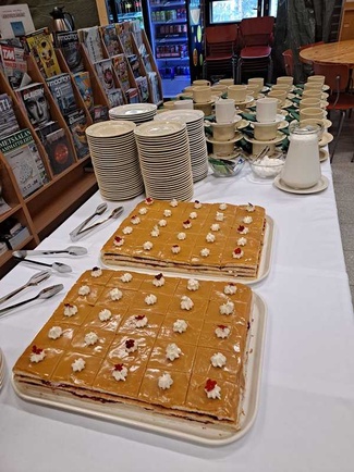 Kouvolan Sotilaskotiyhdistys olisi täyttänyt 1.10.2022 100 vuotta. Yhdistyksen toiminnassa vaikuttaneita sisaria kunniakäynnillä Kouvolaan haudattujen entisten puheenjohtajien haudoilla ja sen jälkeen juhlakahveilla sotilaskodissa.