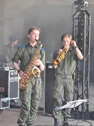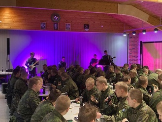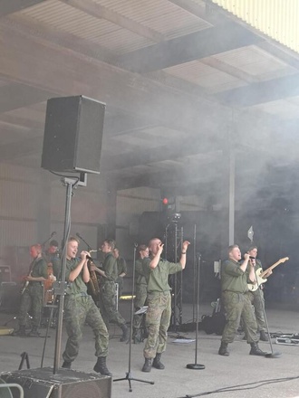 Varusmiessoittokunnan showbändin mukaansatempaavan esityksen tahdissa käynnistyi heinäkuun saapumiserän tulojuhla,joka jatkui sotilaskodissa limu- ja munkkitarjoilulla. Viikkoon on mahtunut myös perinteiset kirkkokahvit.